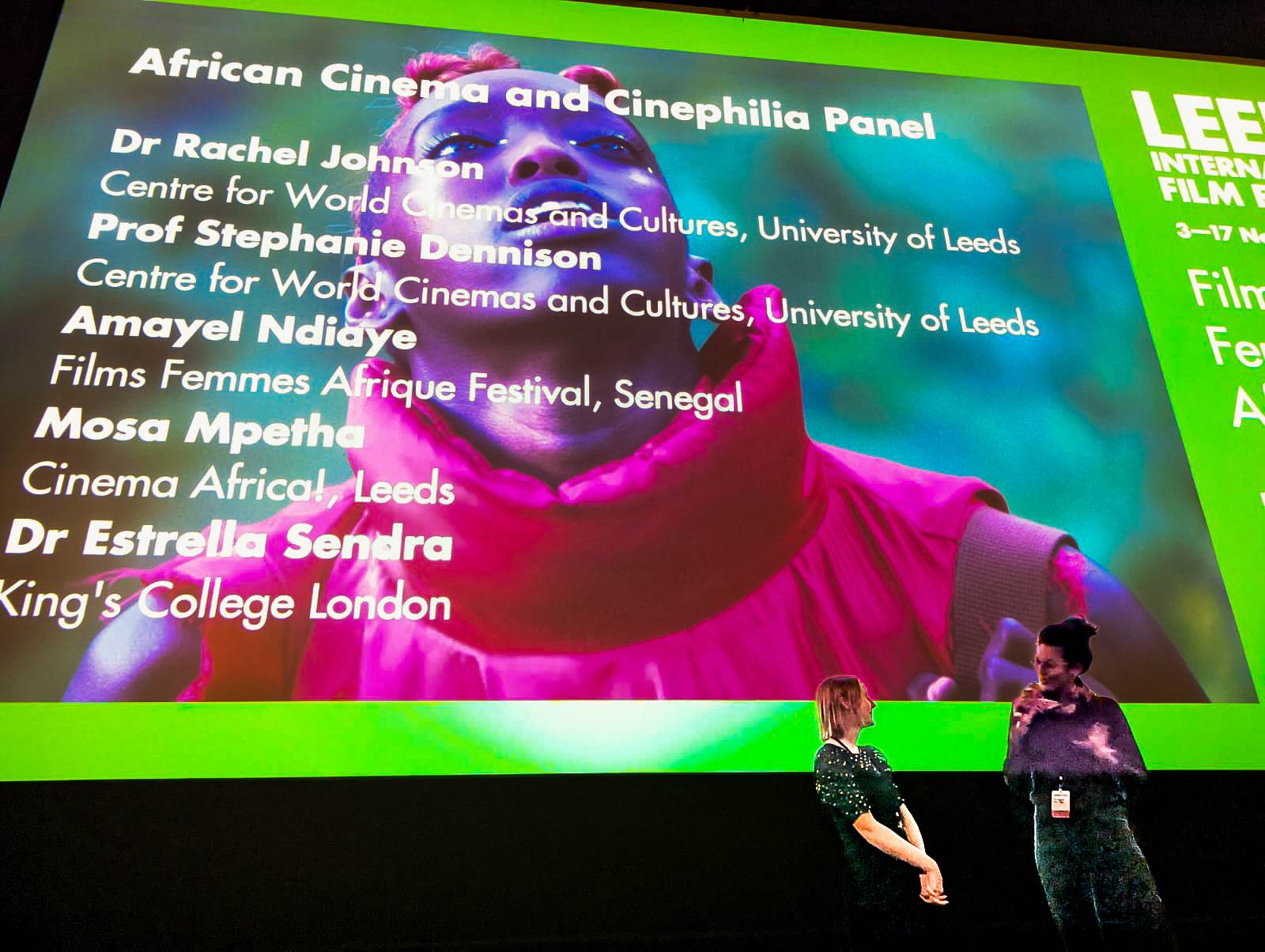When we became aware of the collaborative strand between LIFF and FFFA, through the co-curated strand ‘Women Creators of the Future’, we found it a great opportunity to conduct research on a new initiative, arguably triggered by an intention of change within the LIFF, and coherent with the spread across festival spaces that characterizes the FFFA. Being one of our research collaborators based in Leeds, Dr Rachel Johnson, a regular festival-goer, made it also particularly relevant. Rachel Johnson had also approached the festival organisers for a collaboration, a panel discussion on ‘African cinema and cinephilia’, followed one of the film screenings, with her film students among the audiences, as part of her project ‘New Voices in Cinephilia’, along with her colleague Prof Stephanie Dennison. Aware of the fact that Estrella Sendra would travel to Leeds for the purpose of this festival, instead of the one in Senegal (which would not happen until 2024), Rachel Johnson invited her as a one of the panelists, along with Amayel Ndiaye, co-organiser of FFFA, and Mosa Mpetha and film programmer and co-founder of the Black Cinema Project.